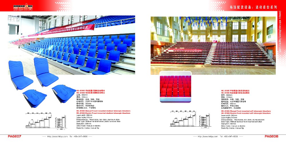 Hongkang front mounted stadium telescopic tribune seating HKCG-KTY-B2 basketball gym seats